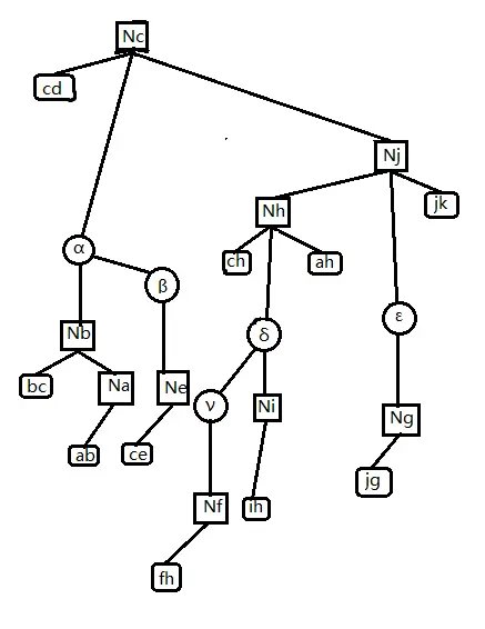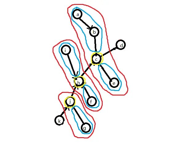 由树收缩的基本操作可知,簇路径上的点、边 \((j,h,c,jh,hc)\) 的信息最后是通过 Compress 操作才加入 \(C(k,g)\) 的,而的非簇路径点 \((a,b,i,f,g,e,ig,\cdots)\) 是通过 Rake 操作才加入 \(C(k,g)\) 的。