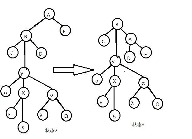若 \(x\) 的爷节点有一个右儿子,则将点 x 和爷节点的右儿子互换,更新信息,然后退出。