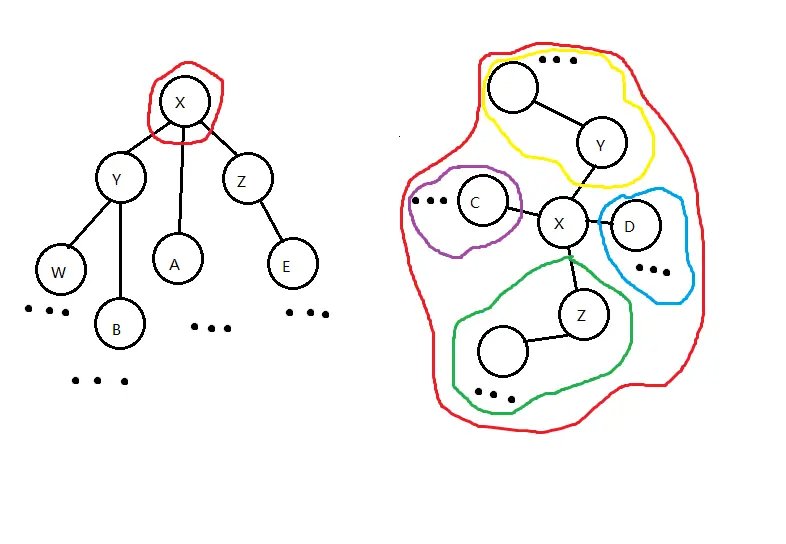 如图,为去掉点 \(x\) 的右儿子过程。